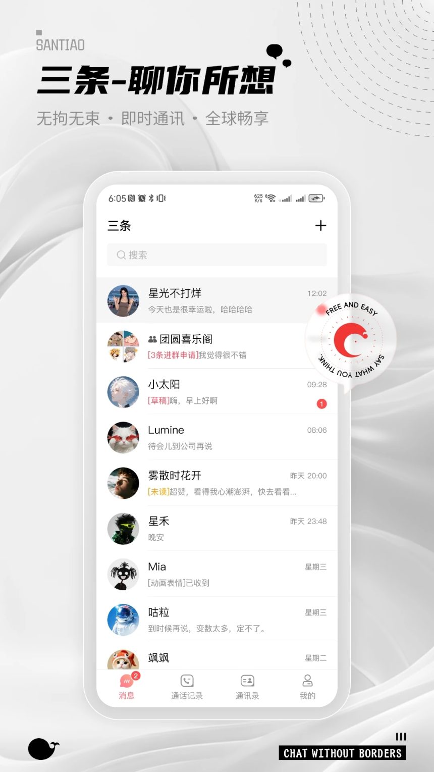 多媒体分享功能让沟通更加丰富多彩。通过三条,用户不仅可以发送文字和表情,还能分享高清图片、短视频、文档甚至位置信息。官网特别强调了其优化的文件传输算法,即使在网络条件不佳的情况下,也能保证文件快速、完整地送达。