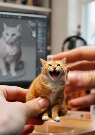 It perfectly replicates the posture and charm of the original image, while also showcasing lively and adorable movements.